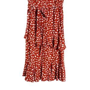 Shein Women Elastic Waist Belted Printed Tiered Ruffle Midi Dress Size 8 Orange