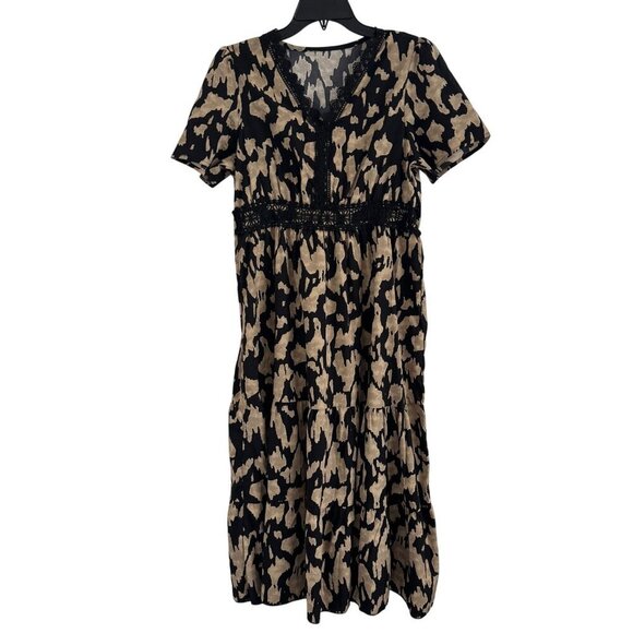 Shein Women Leopard Print Maxi Short Sleeve Dress Size L