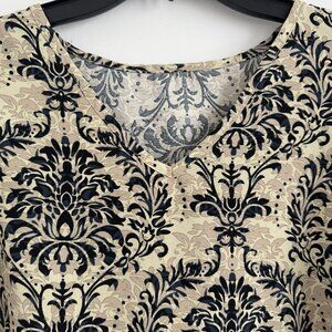 Shein Women Print Ruffle Short Sleeve V Neck Blouses Top Size L