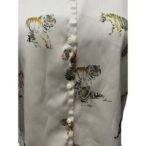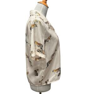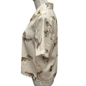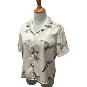Shein Women Tiger Button Down Short Sleeve Blouse Top SIZE Small