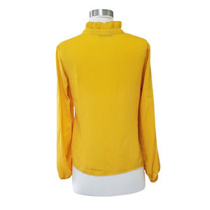 Shein Women Yellow Floral Long Sleeve Tie Neck Mesh Blouse Top Size XS
