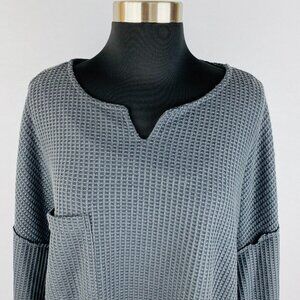 Shein Womens 12 Gray Long Sleeve Pocketed Split Neckline Textured Top