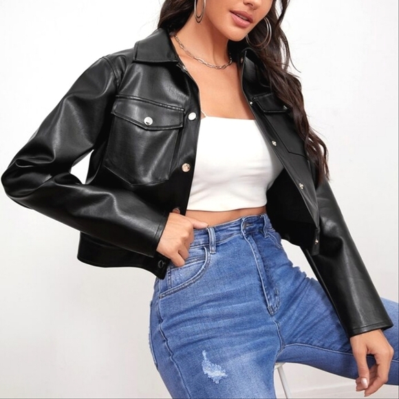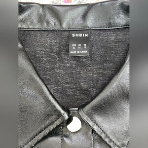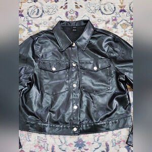 Shein Women's Black Cropped PU Leather Jacket, XLg