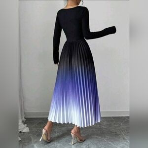 Shein Women's Black to Purple Ombre Pleated Midi Dress Elegant Gradient Sz S (4)
