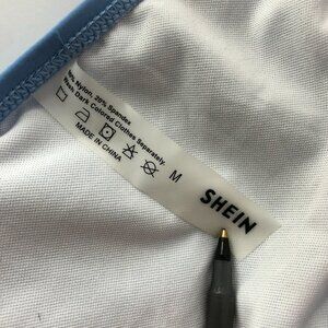 Shein Womens Blue Bikini Bottom High-Cut Mesh Panels Nylon/Spandex Swimwear M