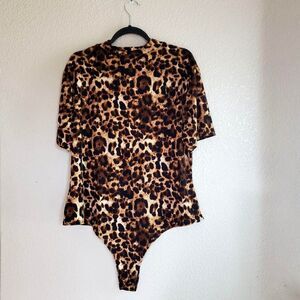 Shein Womens Bodysuit Animal Print 3XL Leopard Print Mock Turtleneck Plus Size