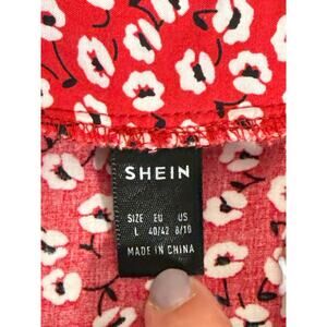Shein Women's Boho Belted Ditsy Floral Button Front Midi Dress Size 10 Red White