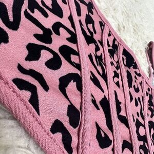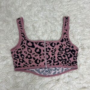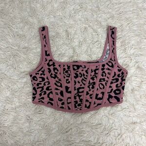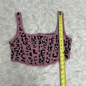 Shein Womens Cheetah Pink & Black Animal Print Crop Corset Sexy Top Size 6