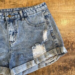Shein Women’s Cut Off Distressed Jean Hi-Rise Mom Shorts size Small 4 Cuffed