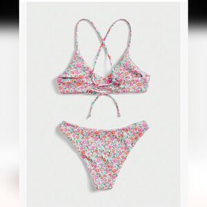 Shein Women's Ditsy Floral Criss-Cross Backless Bikini Swim Set Size Medium NEW