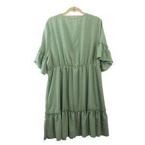 Shein Womens Dress Size 3XL Green Ruffle Tiered 3/4 Flutter Sleeve V-Neck Flowy