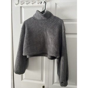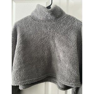 Shein Women's Gray Mock Neck Pullover Sherpa Sweatshirt (Size L)