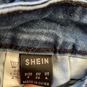 Shein Women’s High Rise Button Fly Distressed Skinny Jeans, size 4. In excellent used condition. See pictures for measurements and fabric content.