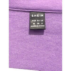 This shirt by Shein boasts a vibrant purple hue, making it a standout in any wardrobe. The button-up design with a collar adds a touch of sophistication, suitable for both casual and professional settings. Its medium size offers a comfortable fit, ideal for versatile styling.