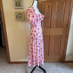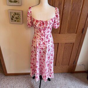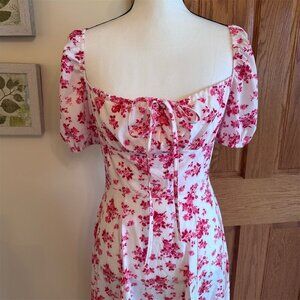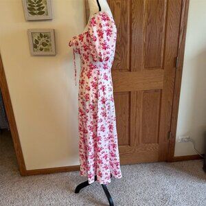 Shein Women's Pink Floral Puff Sleeve Maxi Dress Milkmaid Style Size S 4 Dainty