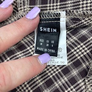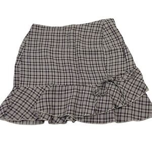 Shein Women's Plaid Pattern Ruffle Hem Tweed Skirt Black Medium