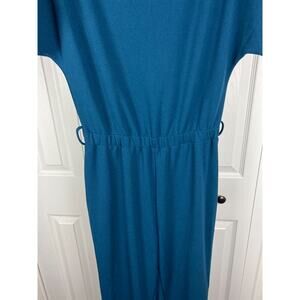 Shein Womens Round Neck Flutter Sleeve Blue Career Belt Looped Jumpsuit Medium