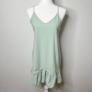 Shein Women's Slip Dress Size S Mint Green Ruffle Hem Spaghetti Strap Shift 90s