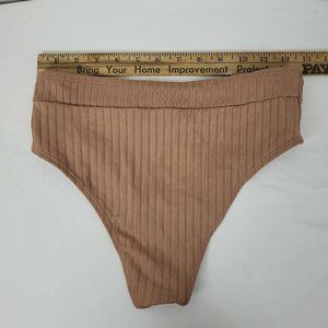 Shein Womens Tan Elastic Waist Hipster Swim Bikini Bottom Size Medium