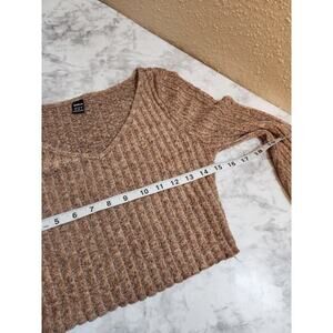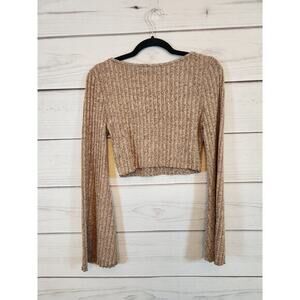 Shein Women's Tan Solid Long Sleeve V-Neck Cropped Pullover Sweater Size Medium