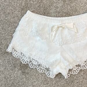Shein Women's White Layered Lace Bow Front Lined Mini Shorts (Sz XS)