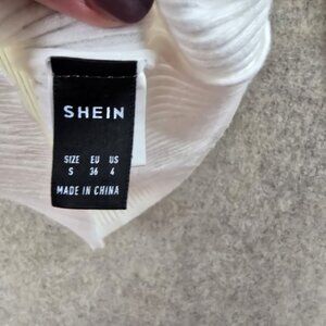 This Shein turtleneck top, with its sleek ribbed texture, offers both comfort and style. Crafted from a blend of elastane and polyester, it promises a snug fit and flexibility for ease of movement. The pristine white hue enhances its versatility, making it an indispensable addition to any wardrobe. Suitable for colder climates, this top is machine washable, ensuring convenience for everyday wear.