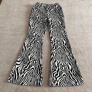 Shein Womens Zebra Print Flare Bell Bottom-Sides Zip Pants Size S (4) Stretch