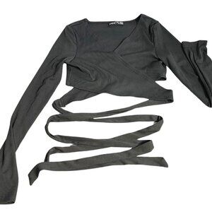 Shein Wrap Around Cropped Top Womens Size S Y2K Goth Grunge Festival Stretch Tie