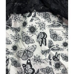 Shein X Frida Kahlo Lace Overlay A-Line Mini Dress Size S Butterfly Floral Bird Print Black White Romantic Gothic Retro New