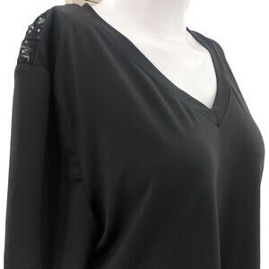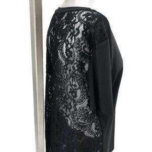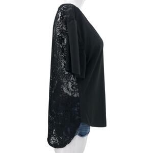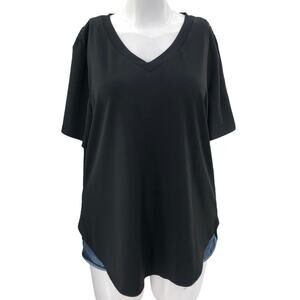 Shein XL Curve Black Open Lace Back Short Sleeve V Neck Fishtail Hem Top