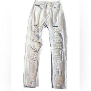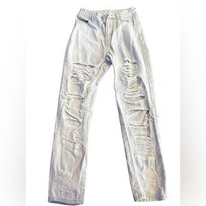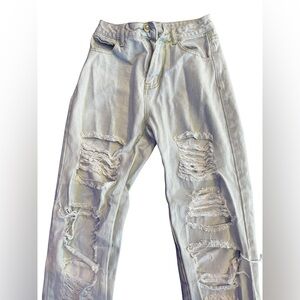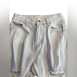 Shein XS Womens / Kids Blue jeans Distressed Holy. Yellow stain next to button of pants picture posted . Good condition