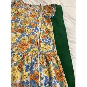 The SheIn Yellow Floral Dress in size XL is a lovely and comfortable option for women looking for a lightweight and flowy summer outfit. The dress features a V- neckline, short flutter sleeves, and a ruffle bottom. It is a pullover style for easy wear. Made from polyester, this midi-length dress is perfect for casual occasions and travel, with its vibrant yellow color and floral pattern adding a touch of femininity. Ideal for the warm weather of summer and spring, this dress is a stylish choice for those seeking a relaxed and stylish look.