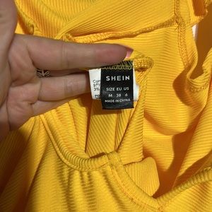 Shein Yellow Ruffle Ribbed Bodysuit Size M