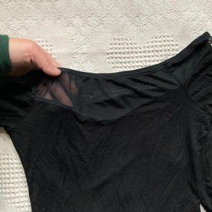 worn once! SUPER soft, and features an incredibly flattering sweetheart neckline--the mesh part keeps it up on your shoulders while still creating an off the shoulder sweetheart look.