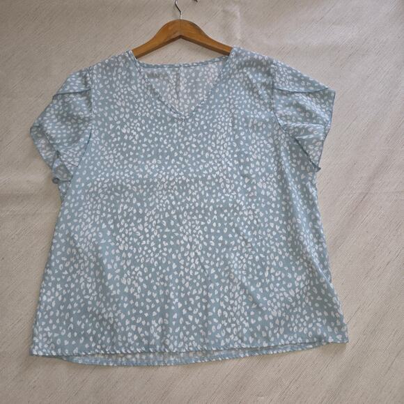 This Shein blouse is perfect for any occasion! The blue and white silky fabric is so soft and comfortable, you'll love wearing it. The v-neck cut is flattering and feminine, and the size large will fit perfectly. Don't miss out on this great deal - grab it before it's gone!