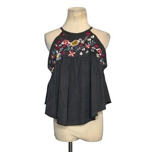 Shein charcoal Floral Embroidered Halter flowy top size Medium