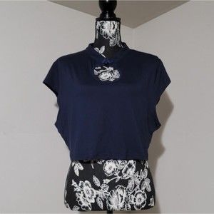 Item: Plus Mandarin Collar Cut Out Tee keyhole short sleeves more like cap sleeves