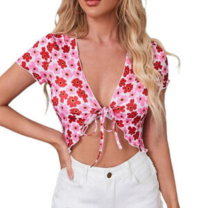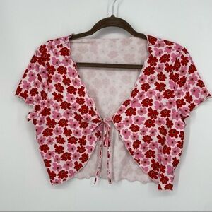 Shein floral lettuce edge Sz‎ XL cardigan tie front