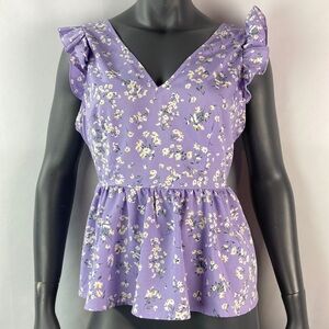 Shein lavender flutter sleeve blouse with tiny daisies medium has tie back and cut out design on back. Feminine and summery.