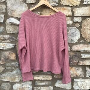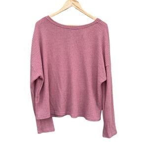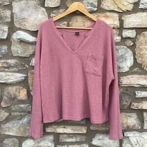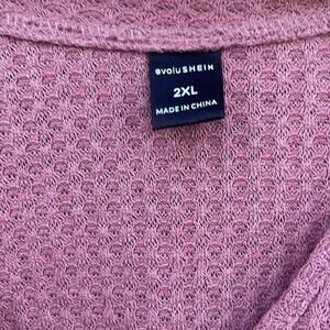 Shein mauve pink waffle knit long sleeve v-neck top size 2X