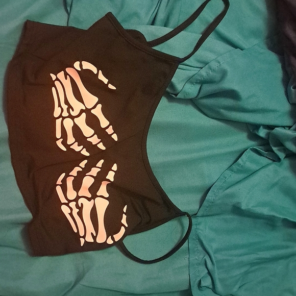 the fabric is really nice, not transparent at all. the color is a off brand black with a skull face which is white