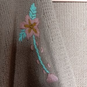 Shein pink cardigan sweater with floral and pockets. Size small over sized