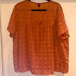 Shein polka dot top, v neck rust color sheer, with lining baby doll top 3XL