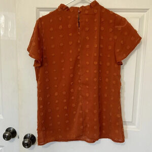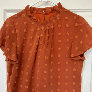 Shein ruffled sleeve Swiss dot blouse size small rust orange