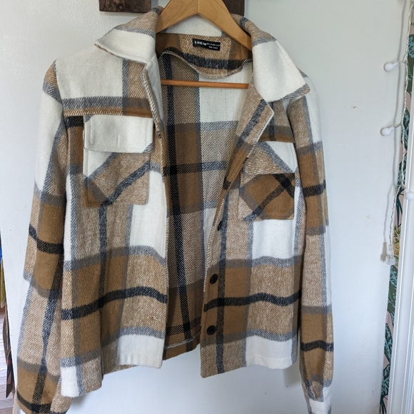 Hi, According to the site it says : L-8/10 - Shoulder:23 in Length: 19.9 in, Sleeve Length : 21.7in, Bust 45.7 in, Cuff 9.6in Bicep Length: 16.3 in.