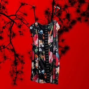 Shein sm spaghetti straps adjustable black floral polyester blend stretch dress. Gently used. No rips stains snags