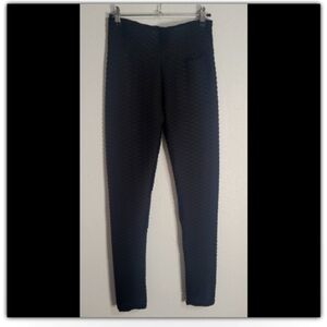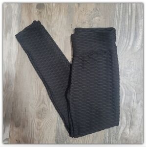 Shein textured leggings size 4 see pics for verification of size gently used no holes or stains or pilling measurements approximately flat lay waist 13 front rise 10 inseam 27
