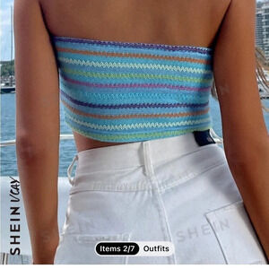This is new without tags blue cropped SHEIN tube top in an XS. 100% polyester.Maxine wash cold.