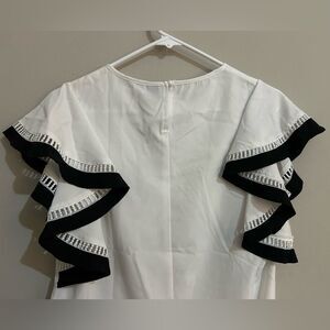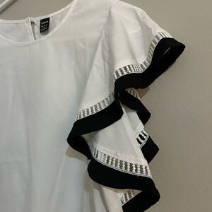hein white ruffle sleeve loose blouse with black detailing.never worn