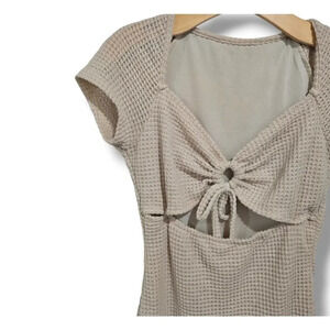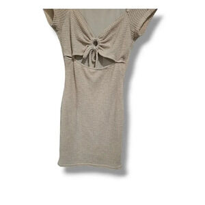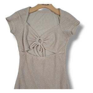 Shein women's cream prive sweetheart neckline drawstring waffle bodycon dress